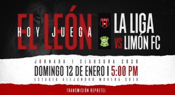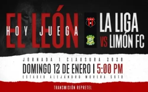 El partido deAlajuelense vs. Limón por la primera jornada de la Primera División de Costa Rica será este domingo 12 de enero en el Estadio Alejandro Morera Soto.