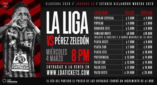 El partido deAlajuelense vs. Pérez Zeledón por la jornada 13 de la Liga Promerica será este miércoles 4 de marzo en el Estadio Alejandro Morera Soto.