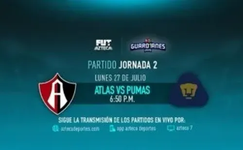 El partido de Atlas vs. Pumas UNAM por la segunda jornada de la Liga MX será este lunes 3 de agosto en el Estadio Jalisco.