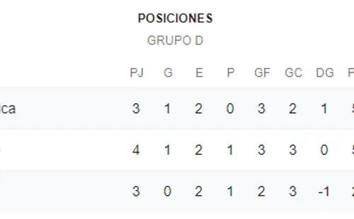 +Así marcha la tabla de posiciones del Grupo D: