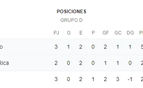 +Así está la tabla de posiciones del Grupo D: