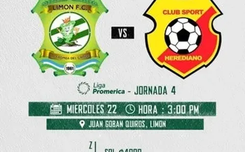El partido deLimón vs. Herediano por la cuarta jornada de la Liga Promerica será este miércoles 22 de enero en el Estadio Juan Gobán.