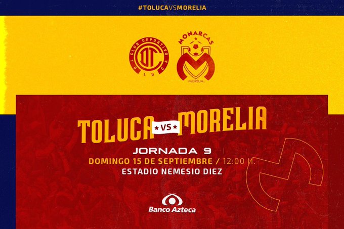 El partido de Toluca vs. Morelia por la jornada 9 de la Liga MX será este domingo 15 de septiembre en el Estadio Nemesio Díez.
