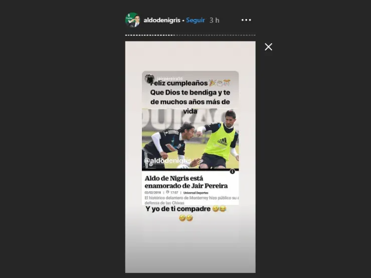 Aldo De Nigris cumplió este lunes 36 años y tanto Monterrey como el Guadalajara lo saludaron a través de las redes sociales, especialmente en Instagram.