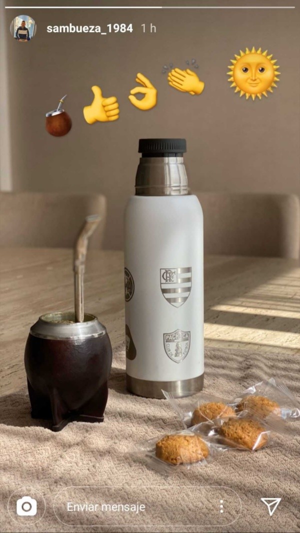 El argentino recuerda a los clubes de la Liga MX por donde pasó y lo refleja con una tradición argentina: los escudos figuran en el termo que utiliza para tomar mate.