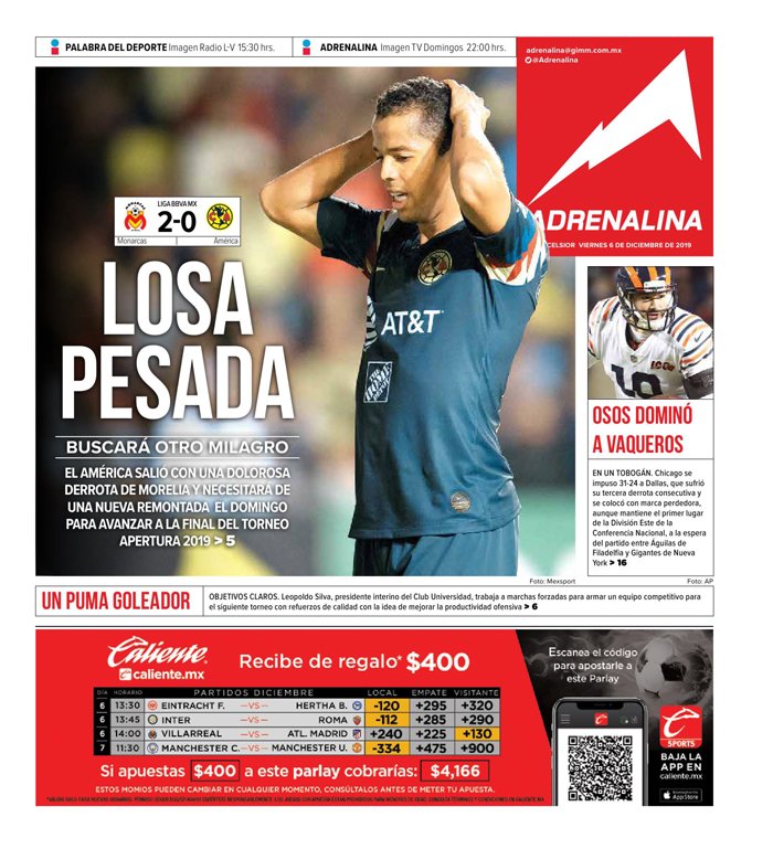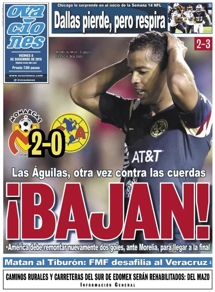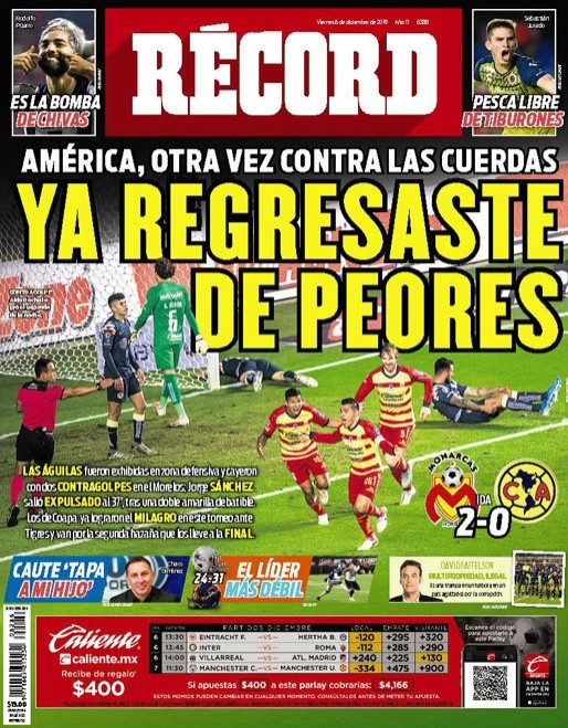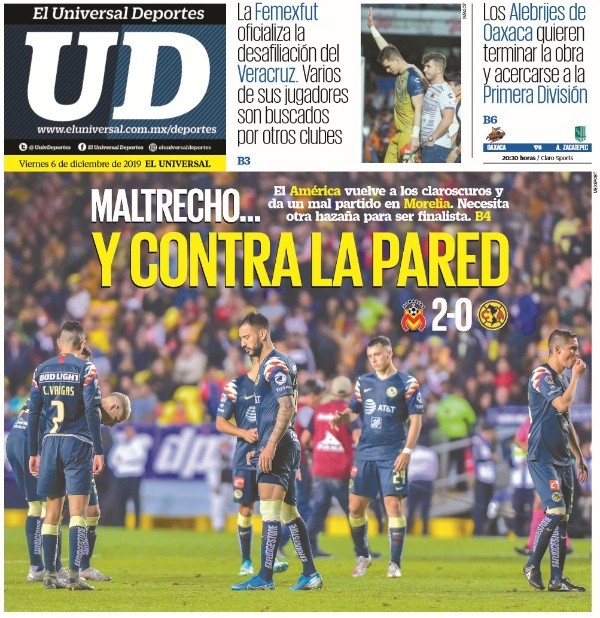 Los periódicos no perdonaron a los Cremas y las portadas se fueron en contra los pupilos del Piojo Herrera. Universal Deportes agregaron que el América está “en contra la pared”.