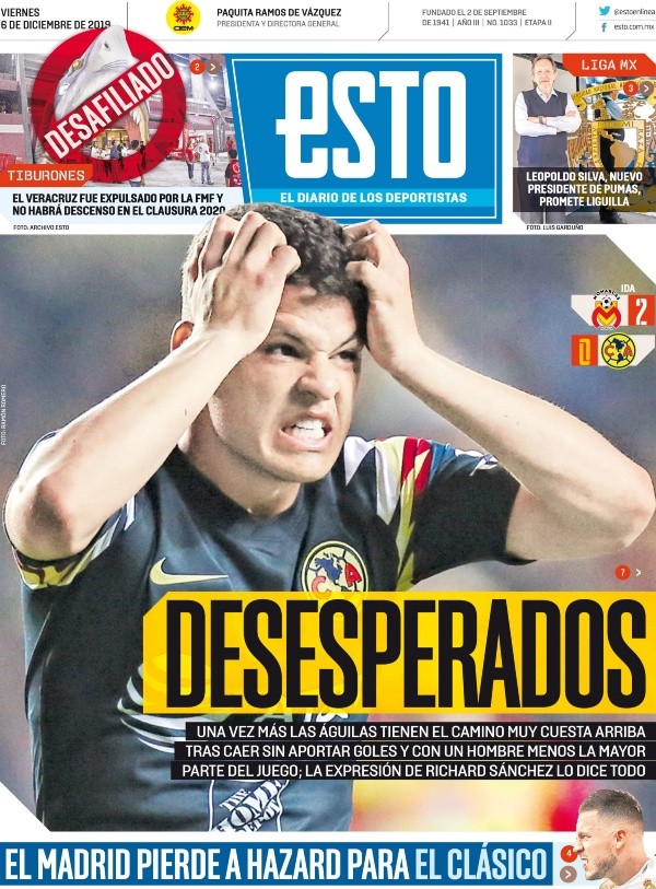 Otros que festinaron fueron Esto y Cancha, quienes titularon “desesperados” y “se puso feo”. Mientras que Récord fue un poco más optimista con las Águilas: “Ya regresaste de peores”.