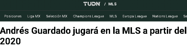 Bomba total de ‘TUDN’. Todavía seguimos conmocionados: Andrés Guardado jugará en la MLS a partir de 2020.