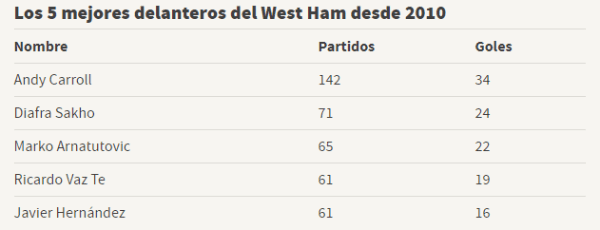 En momentos donde se habla de una posible salida del West Ham, Javier Hernández fue nombrado como el quinto mejor delantero del cuadro de la Premier League desde 2010 hasta la fecha.