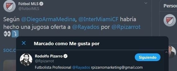 El futbolista le dio “Me Gusta” a una publicación de la MLS que mencionaba el interés del elenco de Miami por su ficha.