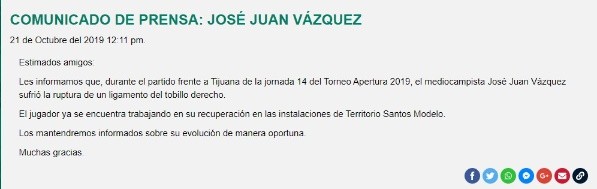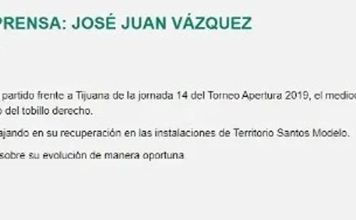 Además, los del norte anunciaron que irán informando la evolución del mediocampista. Pese a que no especificaron el tiempo que estará fuera de las canchas, luce complicado que vuelva a jugar en el torneo.