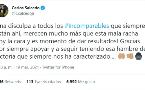 Viene siendo tan malo el rendimiento de Los Felinos, que Carlos Salcedo, uno de los referentes del plantel, se disculpó con la afición en las redes sociales: “Una disculpa a todos los Incomparables que siempre están ahí, merecen mucho más que esta mala racha”.