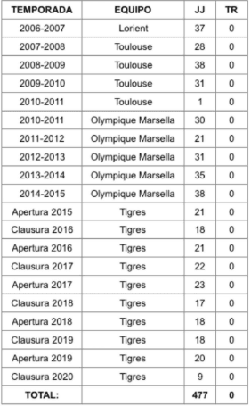 En total, el francés suma 477 partidos sin ninguna expulsión. En la fecha 10 del Clausura 2020 estuvo a punto de ser expulsado, cuando en el minuto 53, Fernando Hernández le mostró la roja por un supuesto pisotón sobre Joaquín Esquivel, pero gracias al VAR, el silbante decidió retractarse y sólo se quedó en amonestación.