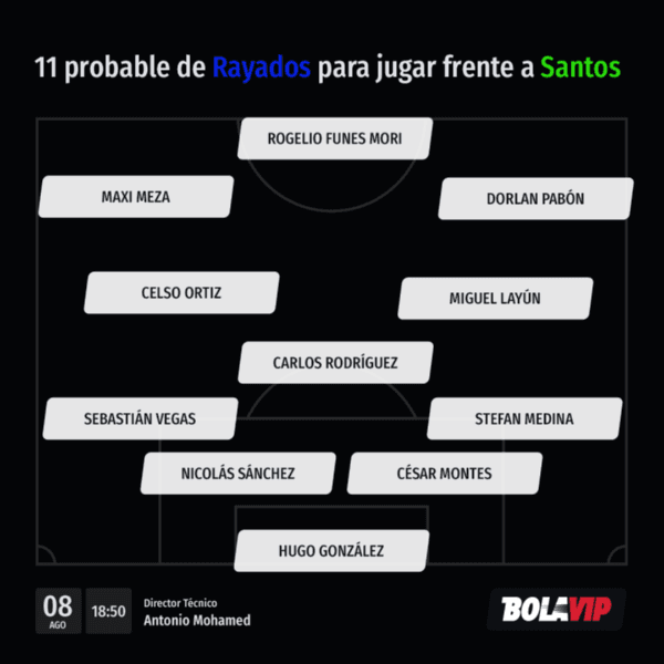 Para ello, el Turco tiene pensado realizar dos modificaciones con respecto al 11 que cayó frente a La Fiera: Pabón por Kranevitter y Hugo por Cárdenas. Por lo tanto, saldría a la cancha con: Hugo González; Stefan Medina, César Montes, Nicolás Sánchez, Sebastián Vegas; Celso Ortiz, Carlos Rodríguez, Miguel Layún; Dorlan Pabón, Rogelio Funes Mori y Maximiliano Meza.