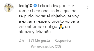 “Felicidades por este torneo hermano. Lástima que no se pudo lograr el objetivo, te voy a extrañar. Espero pronto volver a encontrarme contigo. Un abrazo y feliz año”, escribió Leonel López, refuerzo de los azulcremas en verano, pero que parece que dará un paso al costado.