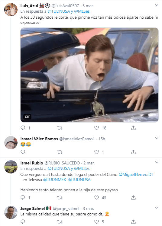 Sin embargo, su participación no le gustó a gran parte del público de TUDN, por lo que criticaron fuertemente a Mishelle, asegurando que “estaba ahí” sólo porque su padre es director técnico del América.