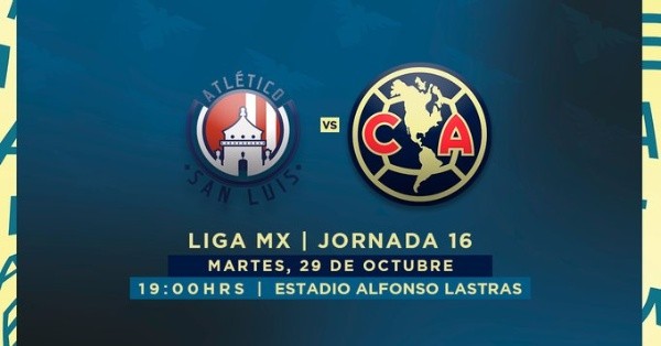 El partido de San Luis vs. América por la jornada 16 de la Liga MX será este martes 29 de octubre en el Estadio Alfonso Lastras Ramírez.