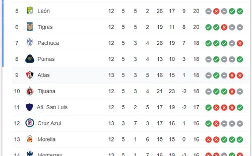Atlas, por su parte, rescató un empate sobre el final del partido ante Xolos de Tijuana y ahora marcha noveno con 18 puntos.