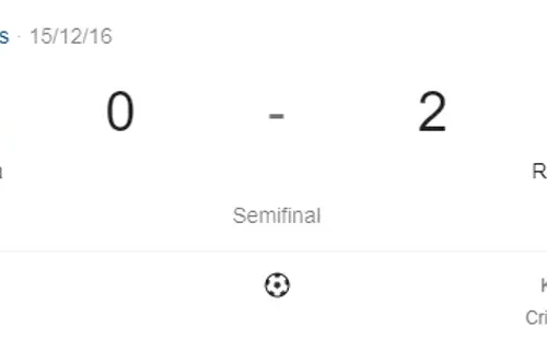 Aquel encuentro se disputó el 15de diciembre 2016y fue victoria del Real Madrid por 2a 0.
