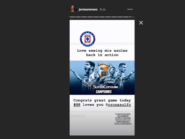 Entre ellos está Jeni Summers, la modelo y vedette celeste que enloqueció tras el 4-0 a Necaxaen Instagram a través de varias historias.
