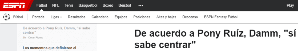 “Tuve la posibilidad de ser su compañero. Sí sabe centrar, tiene una gran velocidad, buenas condiciones. La única manera de mejorar es el trabajo y me parece que en su equipo se pone atención en él, por lo que veo y leo es atractivo en varios equipos”, agregó hoy, según lo que publicó ESPN.