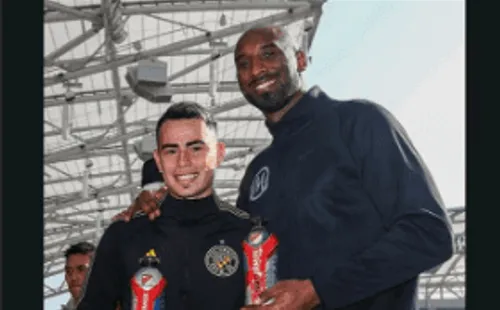 El extremo argentino de 27 años que arribó a Estados Unidos desde Tigres de México presumió en sus redes sociales una foto junto a Kobe Bryant, el crack histórico del baloncesto de la NBA.