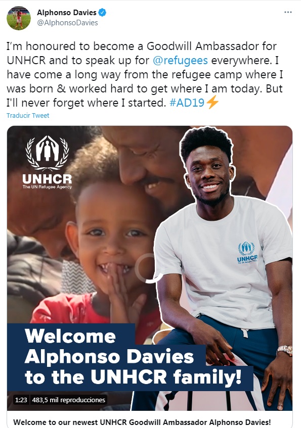 “Alphonso Davies personifica el poder del deporte y nos sentimos verdaderamente honrados de que se una a nosotros. El deporte tiene el increíble poder de traer esperanza, sanar y ayudar a moldear el futuro de quienes se ven obligados a huir. En nuestro trabajo con los refugiados, vemos a diario la diferencia edificante que los deportes pueden hacer en sus vidas”, afirmóFilippo Grandi, alto comisionado de la ONU para los refugiados.