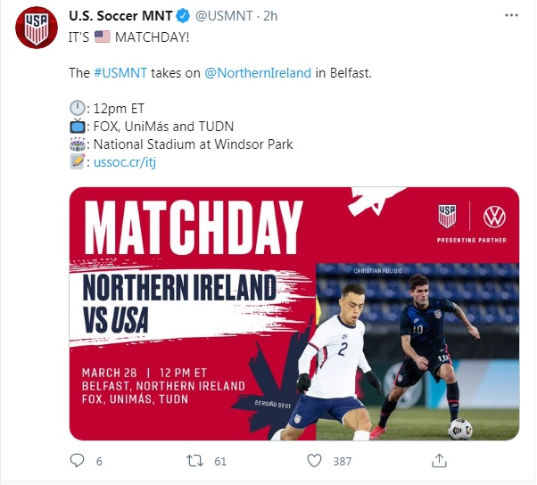 La selección de los Estados Unidos sigue firme en su gira de amistosos internacionales con la intención de mejor lo máximo que se pueda para afrontar sus compromisos oficiales. Esta vez, los norteamericanos se medirán ante su similar de Irlanda del Norte.