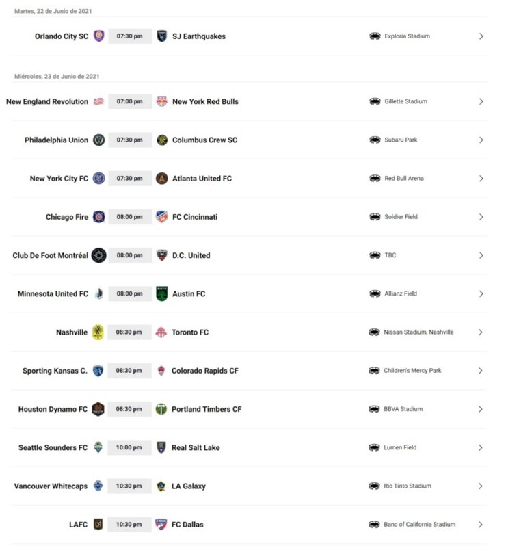 MLS 2021 Jornada9: Partidos de la semana