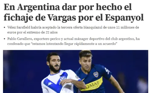 Según avanzóMundo Deportivo, el Espanyol de Barcelona está muy cerca de concretar el fichaje de Vargas a cambio de alrededor de 11 millones de euros.
