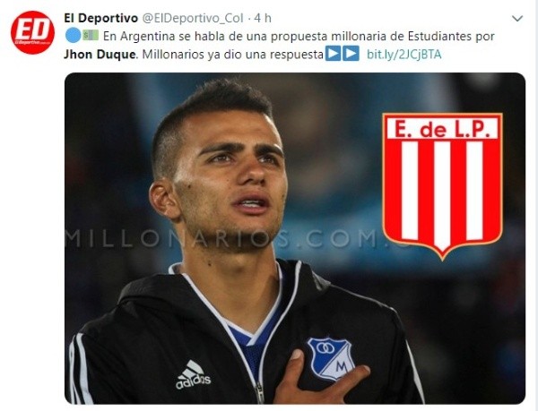 Desde hace varias semanas se viene informando que Jhon Duque tendría varias ofertas para salir de Colombia e ir a jugar al fútbol internacional. Desde Argentina y México han preguntado por el mediocampista, pero Millos no lo quiere soltar tan fácilmente.