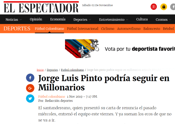 Sin embargo, segúnel diario El Espectador, todavía hay una posibilidad para que Pinto se quede al frente de Millonarios y aseguran: “Este viernes, Pinto entrenó al plantel a la espera de lo que será su futuro. La próxima semana se oficializará la decisión, pero una fuente cercana al club le informó a este diario quehay una gran posibilidad de que el santandereano siga en Millonarios”.