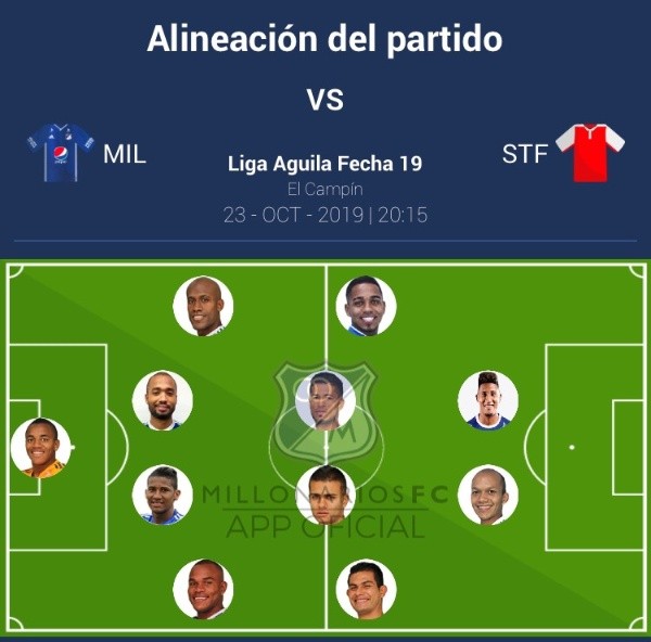 Nómina titular de Millonarios: