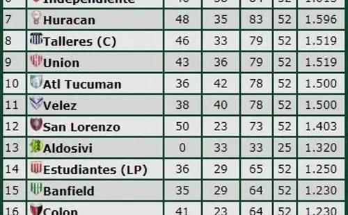 Sin embargo, todos los equipos ya empezaron a pensar en lo que será la próxima temporada. Es que, con la culminación de esta edición del certamen doméstico, quedaron establecidos los siguientes promedios.