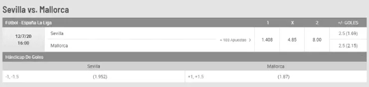 Ahora, Bodog te cuenta, además de que aproveches de registrarte, que el favorito para ganar es el Sevilla, que paga 1,408 veces lo que apuestes, sobre los 8,00 que paga el Mallorca. Ahora, el empate paga 4.85 veces lo que juegues.