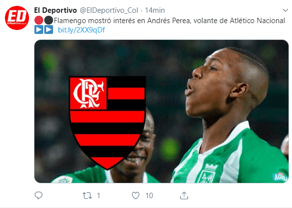 Se trata de Andrés Perea, mediocampista de 18 años que disputó el último Mundial Sub 20 con la Selección Colombia.