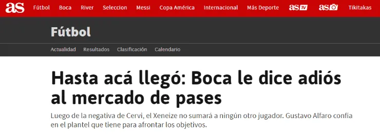 Fruto de las lesiones de Salvio, Ramón Ábila y Mauro Zárate, en Argentina comenzó a instalarse la idea que Boca podría salir en busca de un refuerzo (ya fuera del mercado de pases). Si bien en su momento sonó con fuerza, Franco Cervi finalmente declinó la oferta que el cuadro de la Superliga Argentina hizo por él.