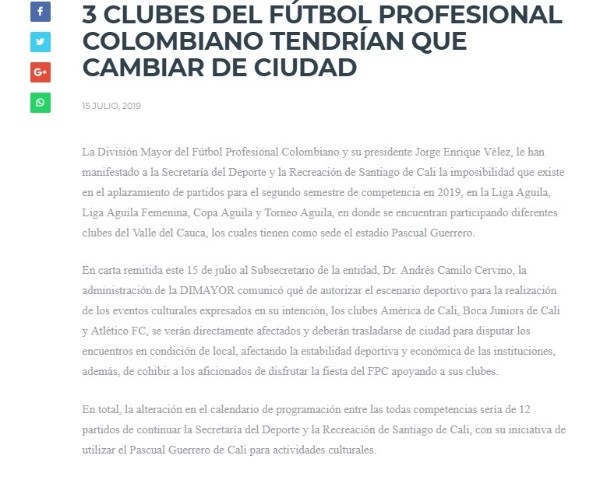 La Dimayor sacó un comunicado oficial respondiendo un pedido de la alcaldía de Cali en los últimos días.