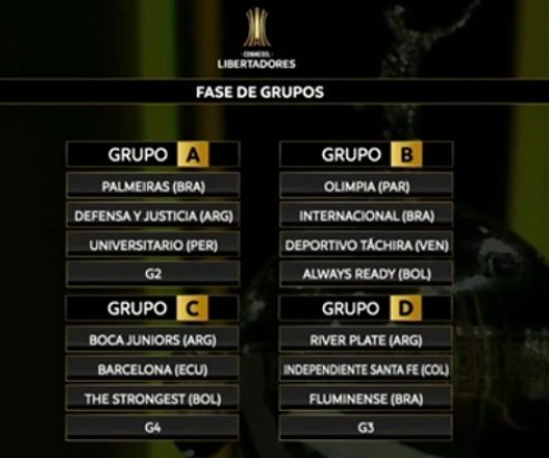 Llegó la hora de la verdad y este viernes se conoció cómo quedó la fase de grupos de la Copa Libertadores, que tendrá inicio el próximo 20 de abril y se jugará en semanas consecutivas hasta el 26 de mayo, justo antes del inicio de la Copa América.