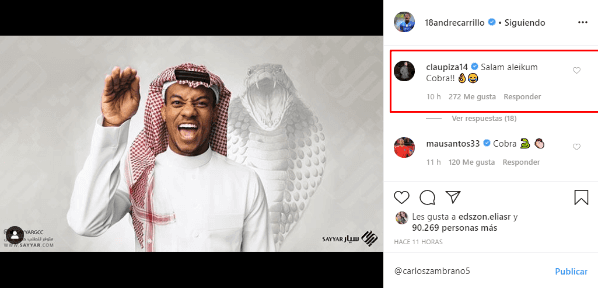 Entonces, como en oras ocasiones, futbolistas nacionales comentaron. Claudio Pizarro y Carlos Zambrano trollearon a André Carrillo.