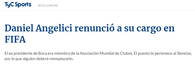 Explicando que Angelici ostentaba dicho puesto en pos de “abocarse al nuevo Mundial de Clubes del 2021″, Bercovichprosiguió: “Ese cargo sí es de Boca. Habrá que ver quién ocupa ese puesto”.