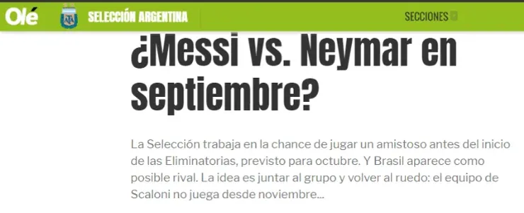 Además, el beneficio económico que podría generar el partido es una de las principales ventajas para ambas confederaciones: aprovechar un Lionel Messi vs. Neymar para borrar las pérdidas de la crisis por la pandemia de COVID-19 sería perfecto.