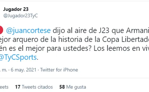 Su nivel, sostenido ya hace algunos años, le hizo ganarse los elogios de Juan Cortese, periodista que cubre al club de Núñez paraTyC Sports.Al aire deJugador 23,el cronista aseguró que el mundialista “es el mejor arquero “es el mejor en la historia de la Copa Libertadores”. Afirmación que le valió varias críticas y objeciones en Twitter.