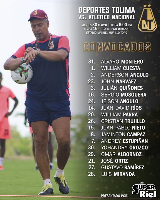 FÚTBOL COLOMBIANO | EN VIVO Y EN DIRECTO | EN VIVO ONLINE | Siguen las emociones del rentado cafetero. Por la fecha dieciséis de laLiga Betplay de Colombia, Deportes Tolimaen condición de local recibe la resistencia delAtlético Nacionalen un cotejo que se desarrollará este martes30de marzo y que generará grandes emociones para todos los fanáticos. El dueloserá transmitidoa través de la señal deWin Sports+.