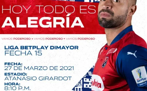 El juego se realizará en el Estadio Atanasio Girardoteste sábado27de marzo.