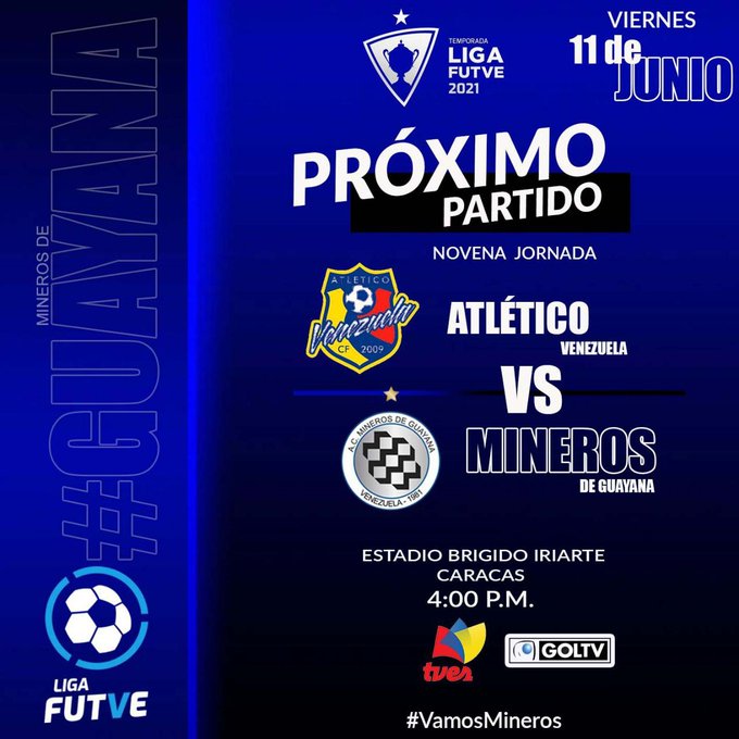Por una nueva fecha de laLiga Futve,Atlético Venezuelarecibe en su territorio al conjunto deMineros de Guayanaen un duelo que se llevará a cabo esto viernes 11 de junio. El juego será transmitidoEN VIVO Y EN DIRECTOa través de la pantalla deTVES, Gol TV y GolTV Play.