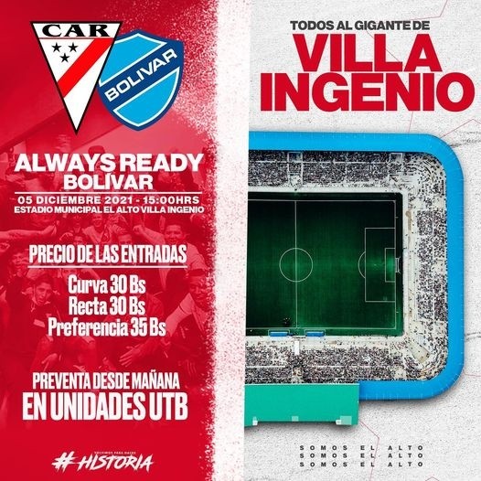 Always Ready, por su lado, ya tiene asegurada su plaza para la Copa Libertadores de América y su objetivo en este encuentro será el de quedarse con los tres puntos. Los visitantes llegan tras haber igualado 1 a 1 ante Bolívar.