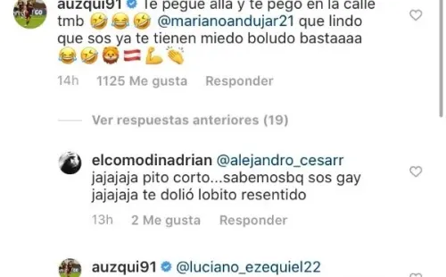 Allí, quien también supo pasar por River tiró: “Te pegue allá y te pego en la calle también.@marianoandujar21qué lindo que sos ya te tienen miedo boludo bastaaaa”.
