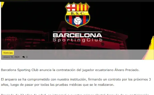 “El arquero se ha comprometido con nuestra institución, firmando un contrato por los próximos 3 años, luego de pasar por todas las pruebas médicas que se le realizaron”, anunció Barcelona SC a través de un comunicado oficial.