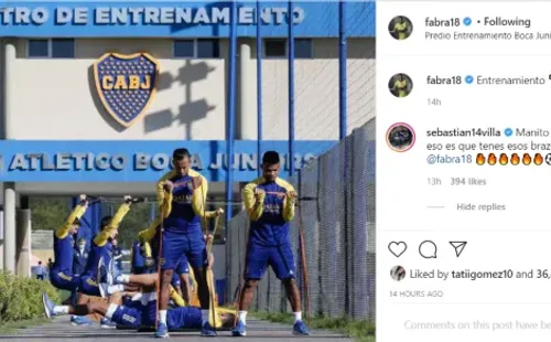 Fue ayer por la noche, luego de que el sábado los dirigidos por Miguel Ángel Russo le ganen a Huracán y se acomoden del todo en su grupo del torneo doméstico, que Frank Fabra publicó una foto entrenando junto a Sebastián Villa. Justamente el volante colombiano fue el autor de un lateral que terminó siendo la asistencia para el 2-0 ante el ‘Globo’.